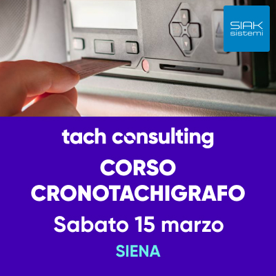 TachConsulting in collaborazione con Siak Sistemi Srl organizza un corso sul corretto utilizzo del cronotachigrafo (ai sensi del DD 215/2016).
