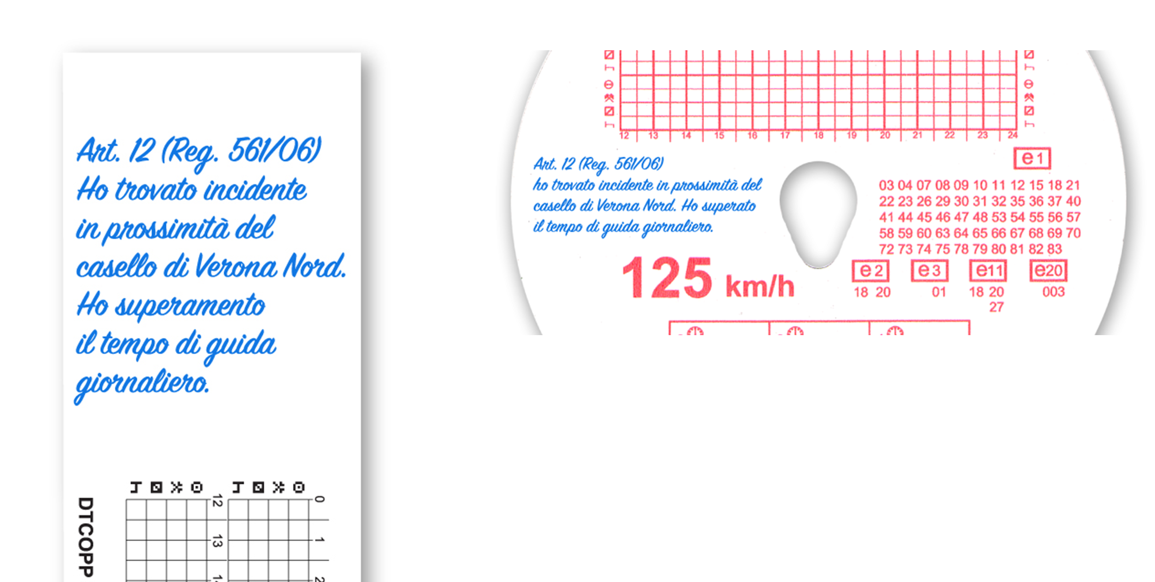 Quando un conducente deroga ai tempi di guida o riposo deve giustificare manualmente sul retro della stampa o del disco il motivo di tale deroga, “al più tardi” nel momento in cui raggiunge un punto di sosta adeguato a mettersi in sicurezza.