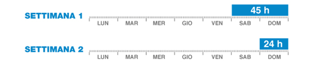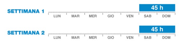 – un periodo di riposo settimanale regolare ed un periodo di riposo settimanale ridotto di almeno 24 ore (45+24).