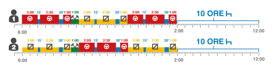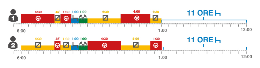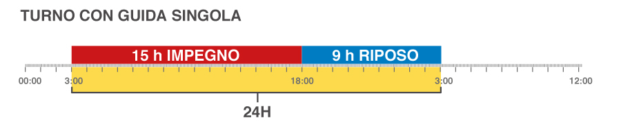 Quindi un solo conducente deve completare un periodo di riposo giornaliero entro 24 ore, 2 conducenti entro 30 ore.