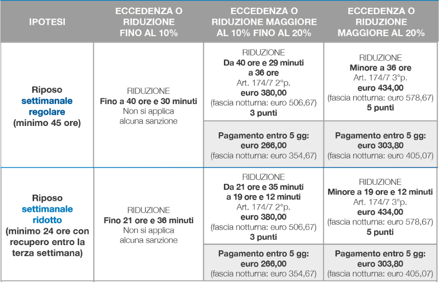 Le sanzioni relative ai tempi di guida e riposo sono suddivise in fasce di gravità