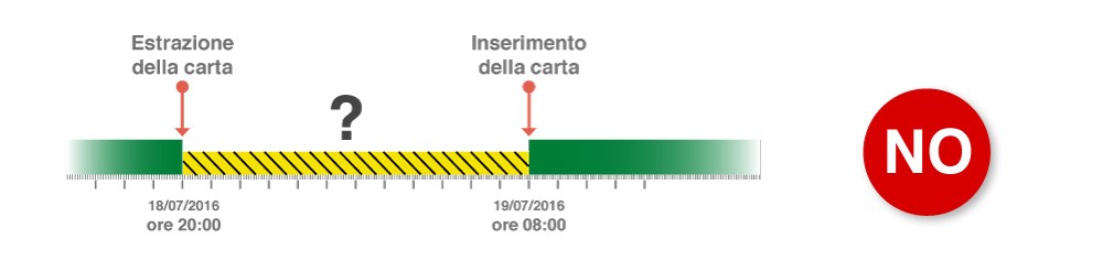 Se l’operazione di inserimento dell’attività non viene effettuata correttamente, verranno salvate sulla carta del conducente dei periodi di attività sconosciuta segnalati con un punto di domanda (?) e sulla stampa e non sarà salvata la nazionalità di partenza.