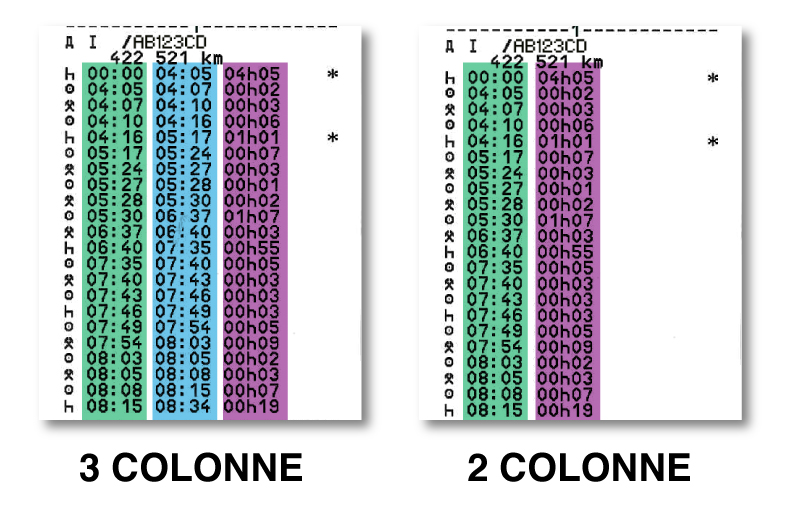 La differenza nel numero di colonne dipende dalla versione dei tachigrafi: